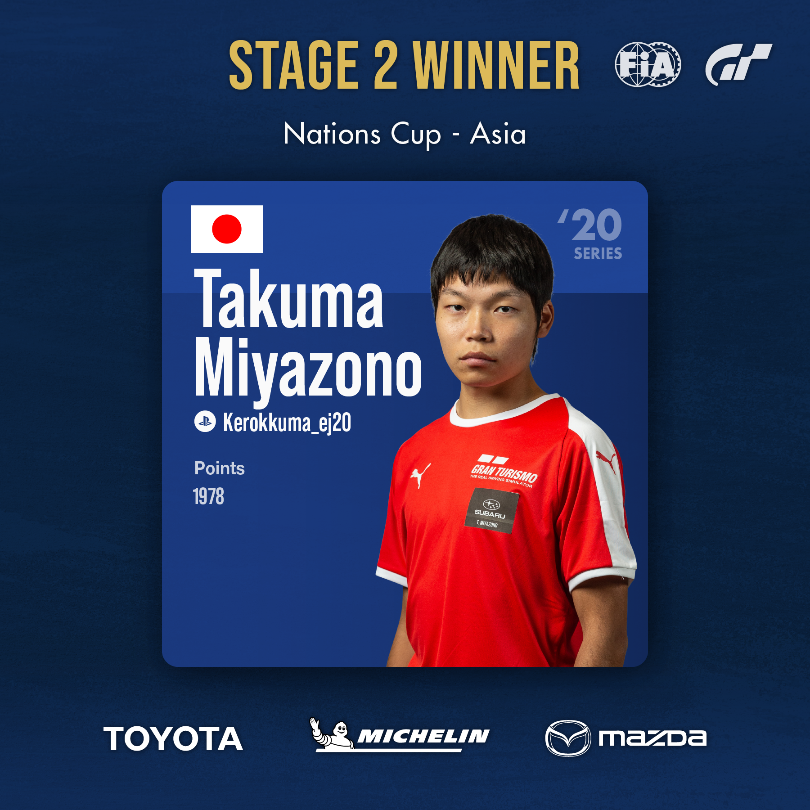 톱에서 체커를 받은 건 미야조노였습니다. 경쟁자들을 압도하는 속도로 레이스를 지배하며 스테이지 2 최종전을 승리로 장식합니다.