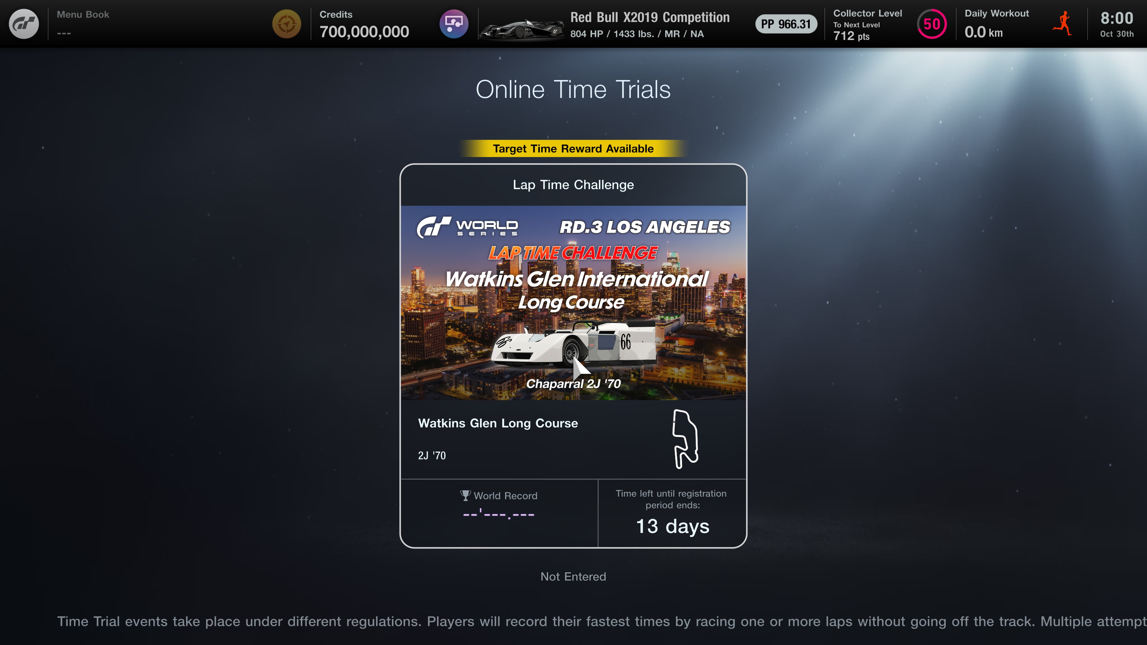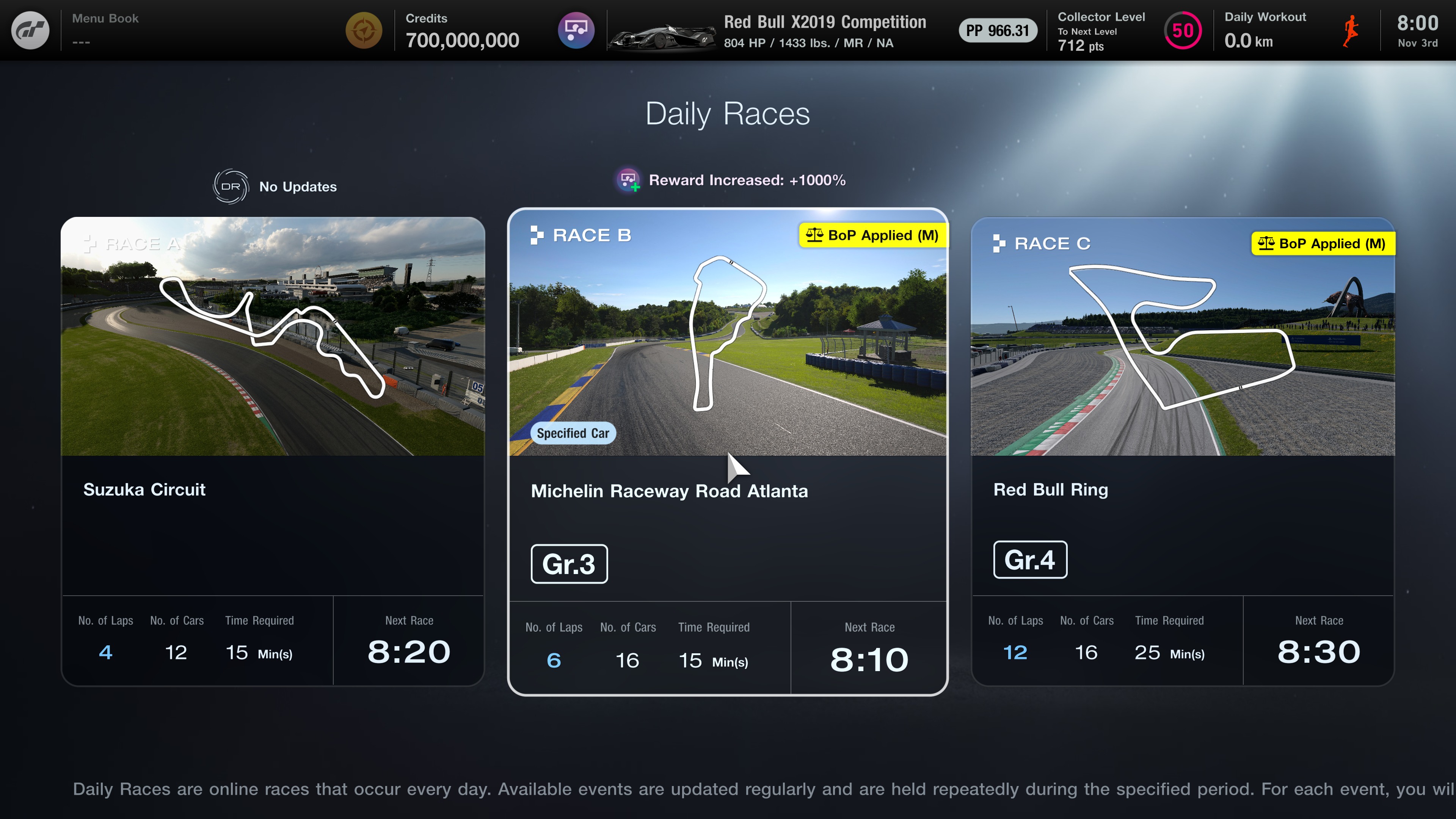 Im Online-Zeitrennen wird die Spanne der Bronze-Zielzeit vergrößert und die Credit-Belohnung verdoppelt. Im täglichen Rennen wird die Menge an Credits, die Sie nach Abschluss des Rennens erhalten, stark erhöht.