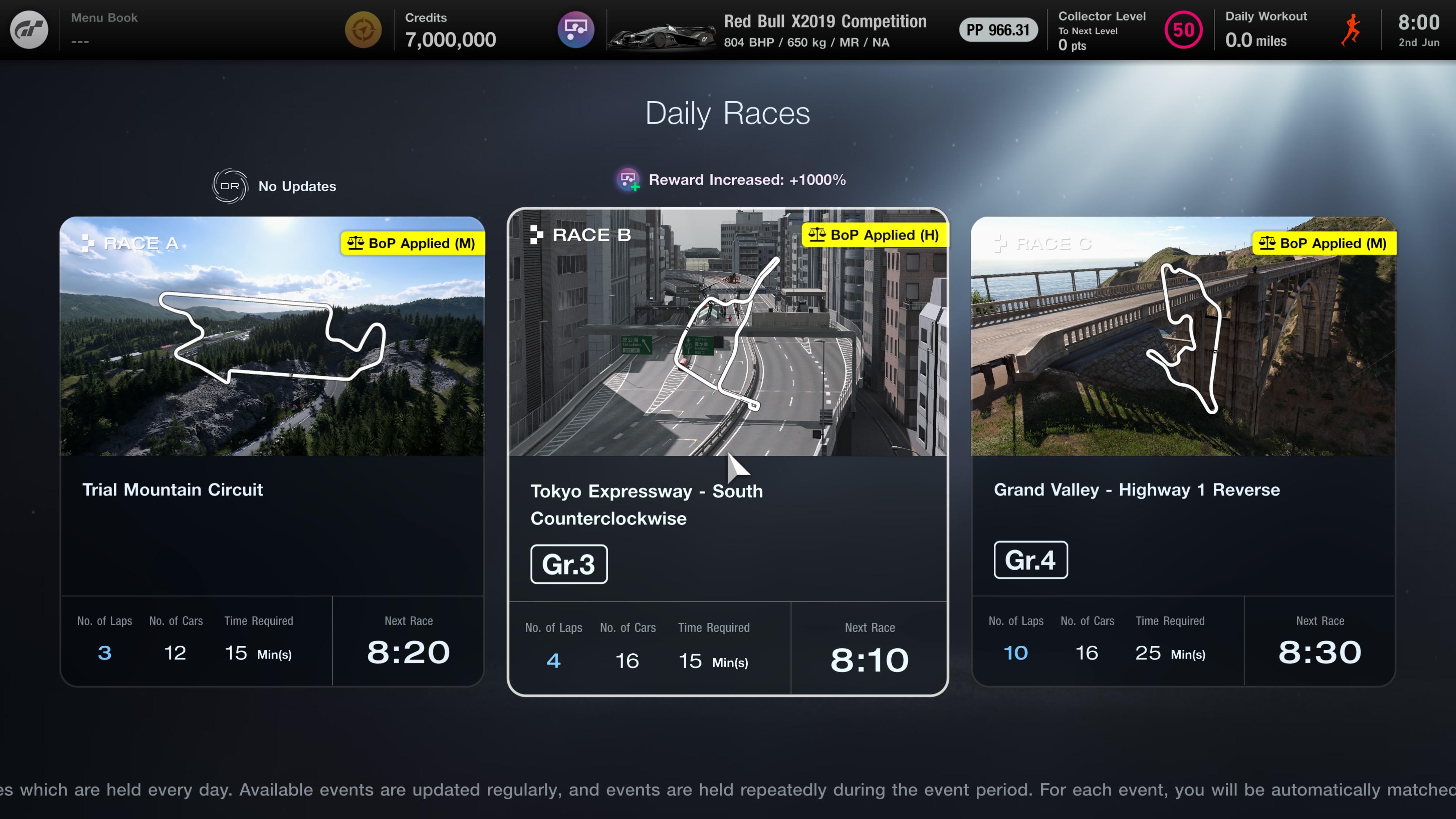 Pour le Contre-la-montre en ligne, la plage des chronos pour le bronze sera élargie, et la récompense en crédits sera doublée. Pour la Course quotidienne, la quantité de crédits obtenue après avoir terminé la course sera beaucoup plus importante.