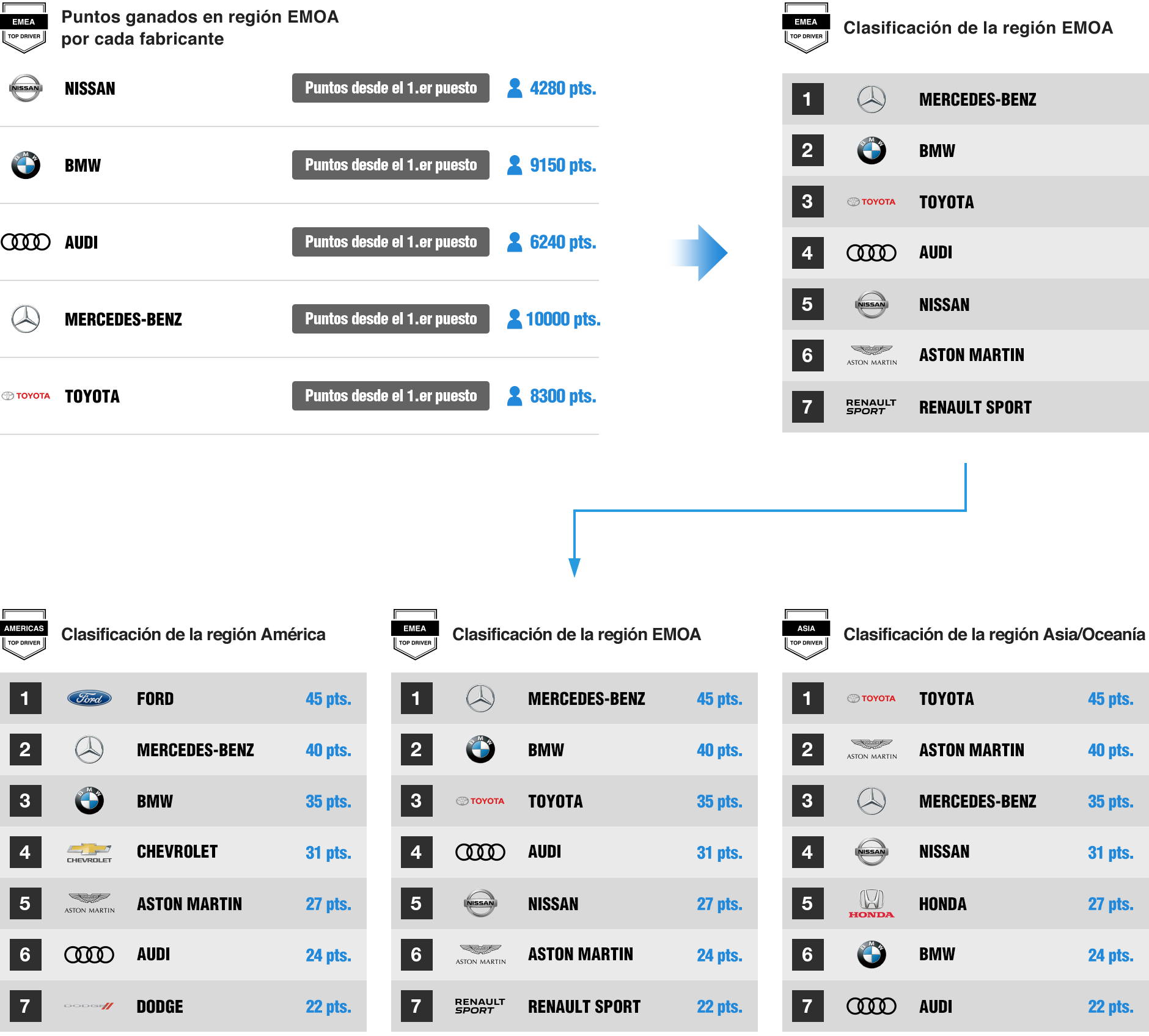 Los puntos otorgados a cada fabricante en las tres regiones se acumularán para determinar la clasificación global de fabricantes.