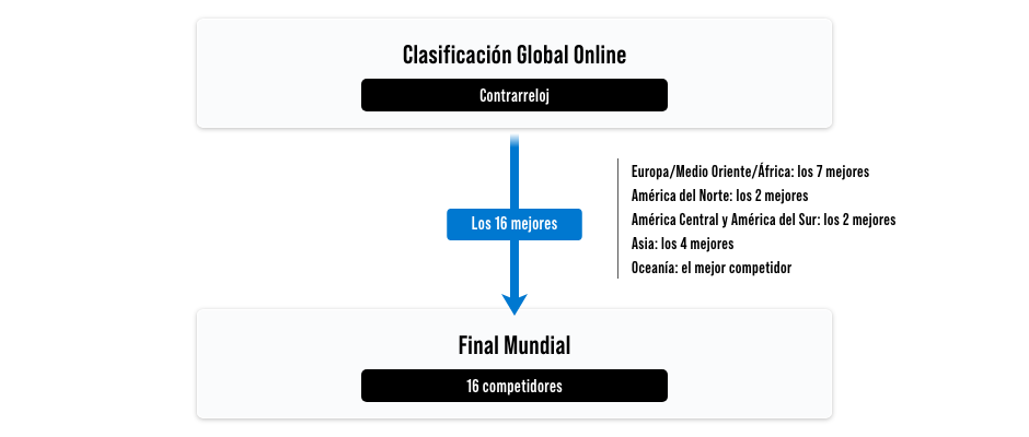 Se trata de un evento global online para los 16 mejores competidores de todo el mundo seleccionados a través de la Clasificación Global Online.