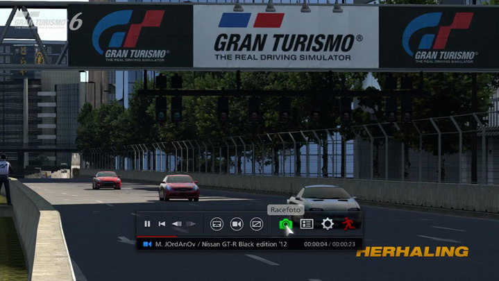 Om een racefoto te maken selecteer je na de race in het Snelmenu de optie Herhaling of speel je een herhaling af via de sectie Herhalingen in de Galerij, een van de onderdelen van Mijn huis.