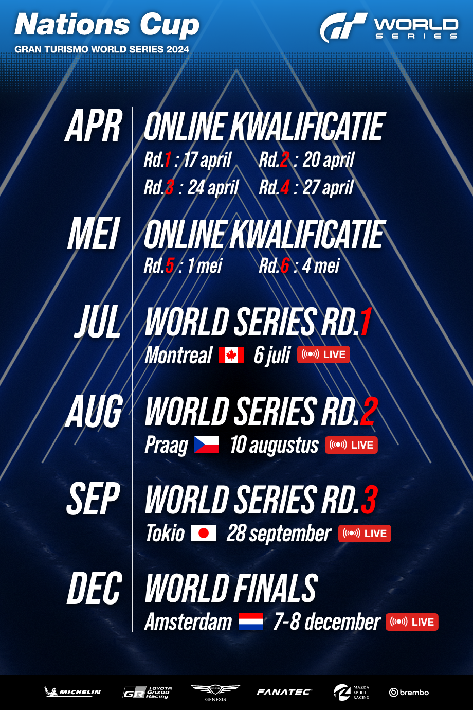 (Definitieve uitzenddatums onder voorbehoud. De coureurs krijgen persoonlijk bericht over de daadwerkelijke racedatums.)