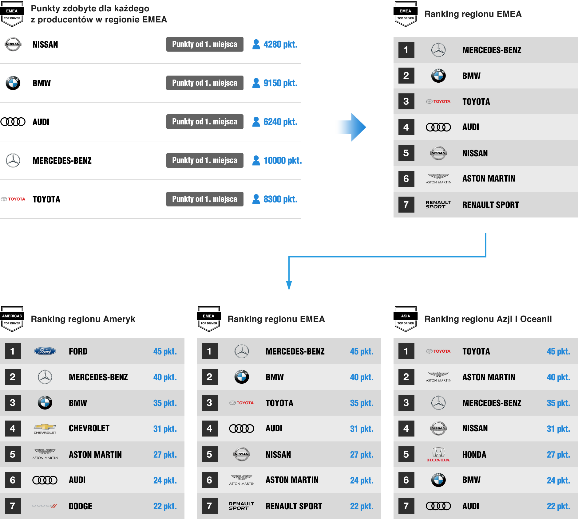 Dla każdego regionu sieciowego sezonu ostatniego punkty zdobyte przez najlepszych graczy w rankingach producenta zostaną doliczone do łącznego wyniku tego producenta.