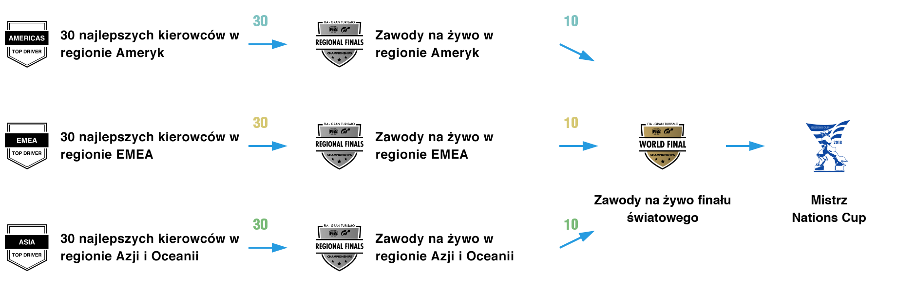 W przypadku Nations Cup w każdym regionie odbędzie się finał regionalny, który wyłoni najlepszych graczy każdego z regionów.