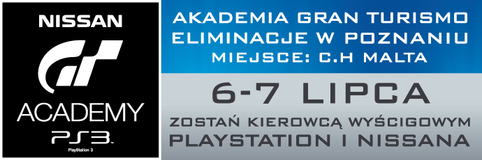 Już w najbliższy weekend Gran Turismo Academy 2013 zawita do Poznania. Gran Turismo Academy to niepowtarzalna okazja dla graczy i wielbicieli szybkiej jazdy, aby z wirtualnego toru przenieść się na największe tory wyścigowe świata. Zapraszamy 6 i 7 lipca do Centrum Handlowego Malta. Zwycięzca Gran Turismo Academy 2013 weźmie udział w elitarnych zawodach za kierownicą Nissana GT-R GT3 Nismo!