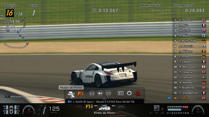 Enquanto está a decorrer uma corrida B-spec, o estado do piloto IA é apresentado no fundo do ecrã, ao centro: