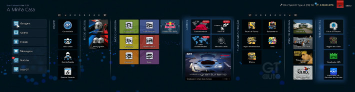 Todas as ações que podem ser executadas no Gran Turismo 6 podem ser acedidas a partir do ecrã 'A Minha Casa'.