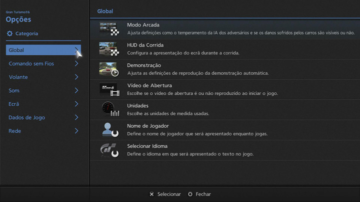 - Ajusta definições como o temperamento da IA dos carros e se os danos dos carros são visíveis ou não.