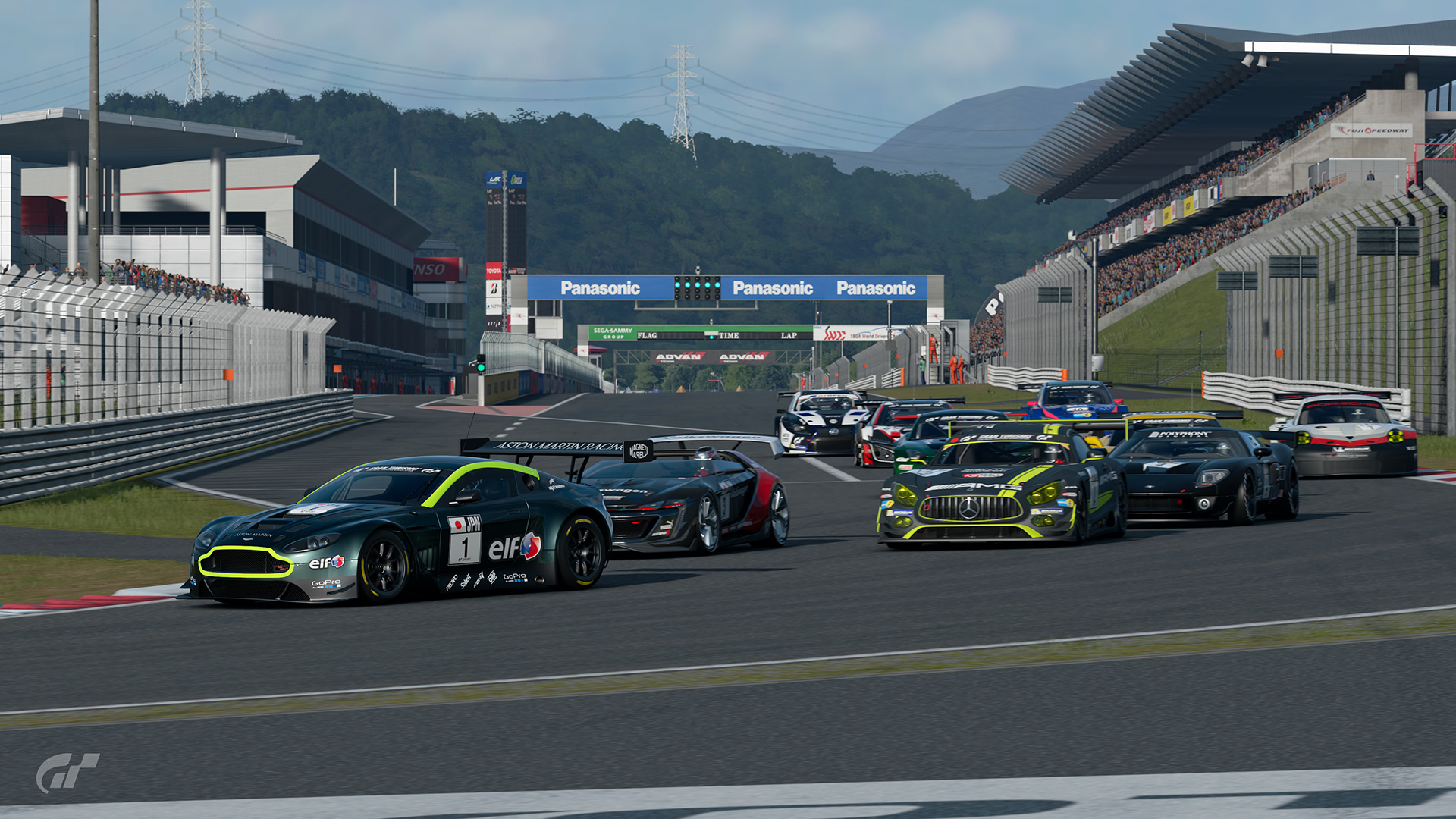 O segundo classificado, Yuki Shirakawa (yukiku) [AMG GT3], entrou demasiado largo na primeira curva, um erro rapidamente aproveitado pelos veteranos Shogo Yoshida (gilles_honda_v12) [GTI VGT Gr.3], que arrancou em terceiro, e Tomoaki Yamanaka (yamado_racing38) [Ford GT LM], que arrancou em quarto.