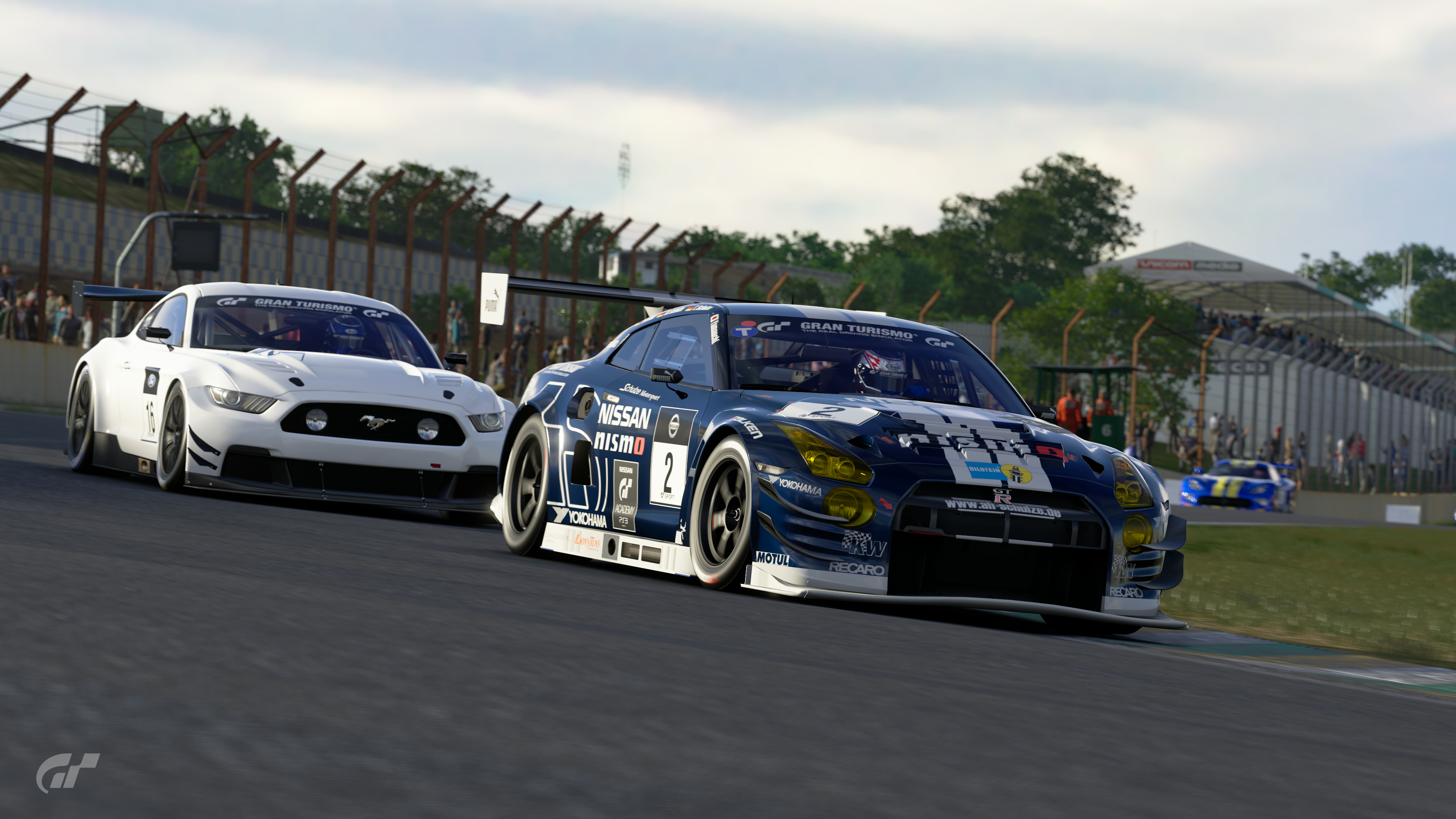 #16 JIM_Giorgio57 (Ford) cedeu sob pressão e permitiu que #2 TRL_LIGHTNING lhe passasse à frente. Agora, a Nissan tinha 2 carros na liderança da corrida.