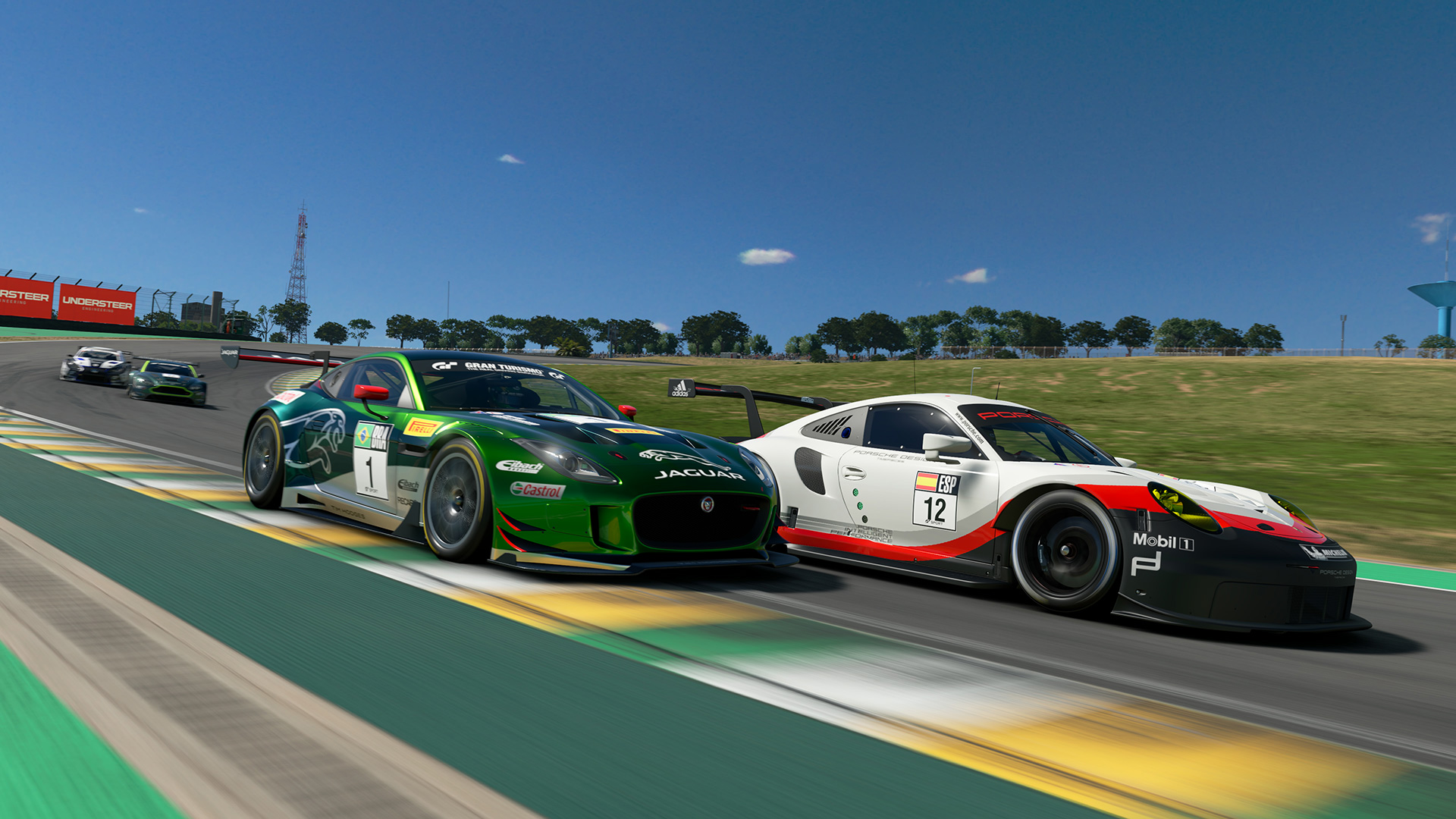 A segunda corrida decorreu em Interlagos, o circuito local do brasileiro Igor Fraga (IOF_RACING17). Tal como esperado, Fraga (IOF_RACING17), que tinha acabado de conquistar a vitória na primeira corrida, garantiu a pole position com o seu F-Type Gr.3.