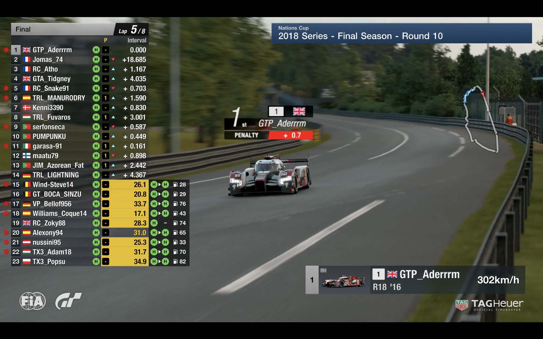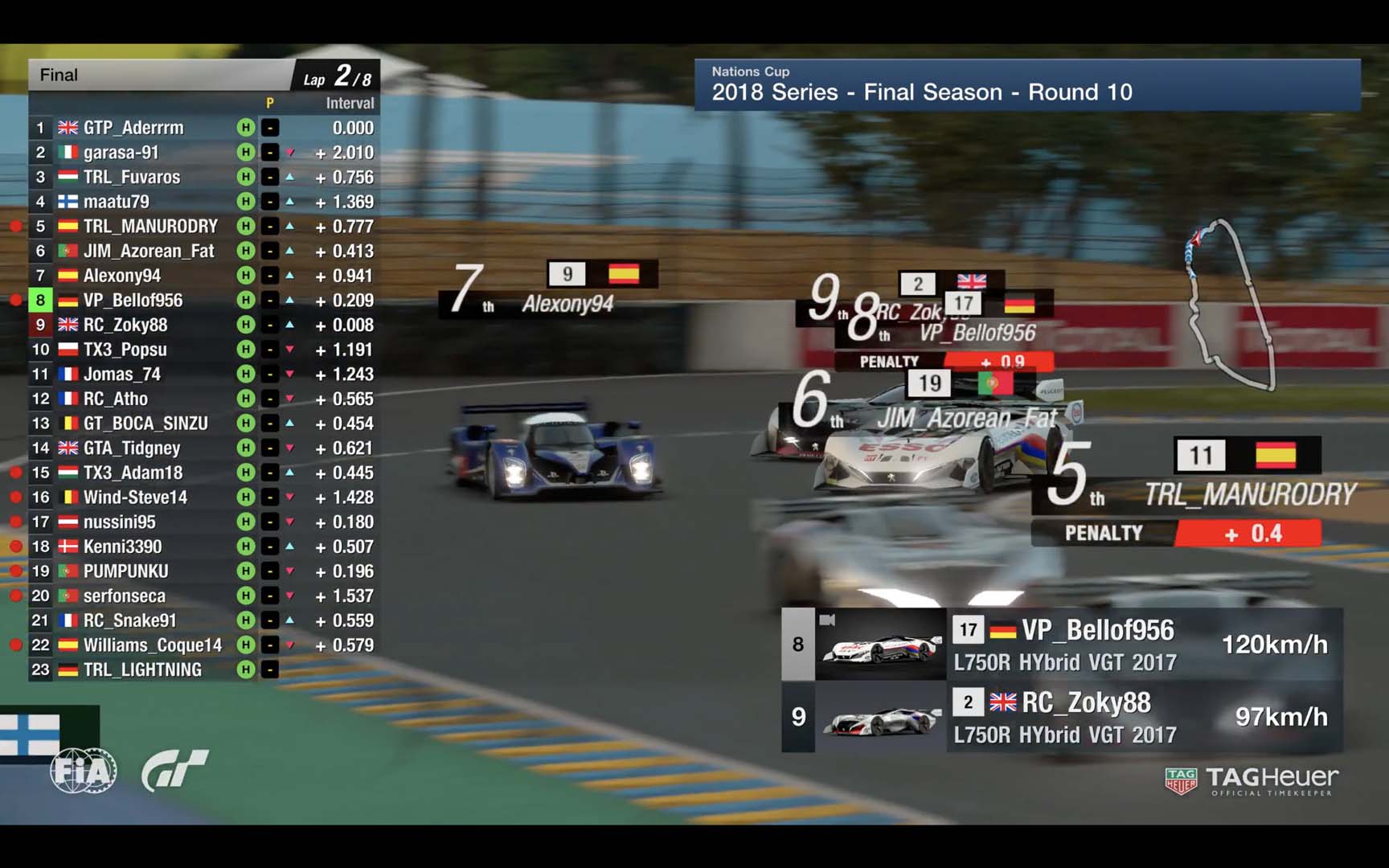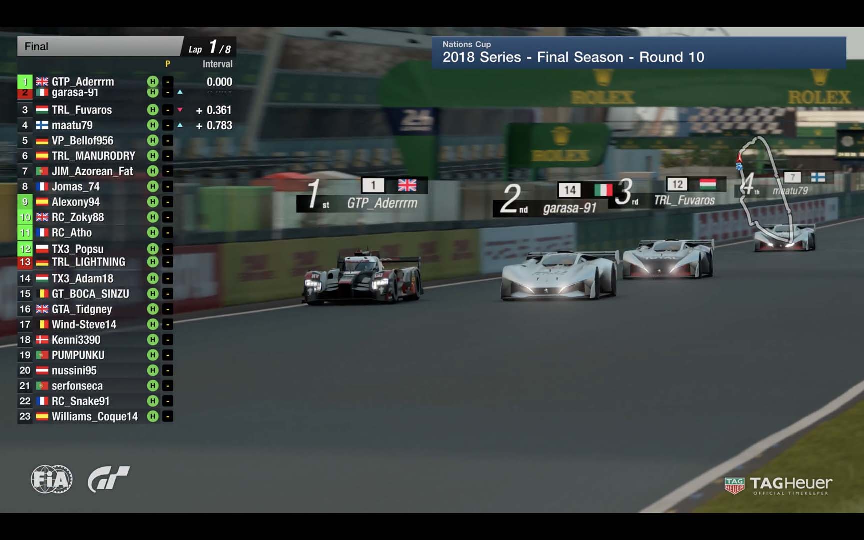 O espanhol TRL_MANURODRY e o italiano garasa-91, que tinha partido da pole, compuseram o restante top cinco, o que contribui de sobremaneira para as suas aspirações de chegarem à final da Nations Cup.