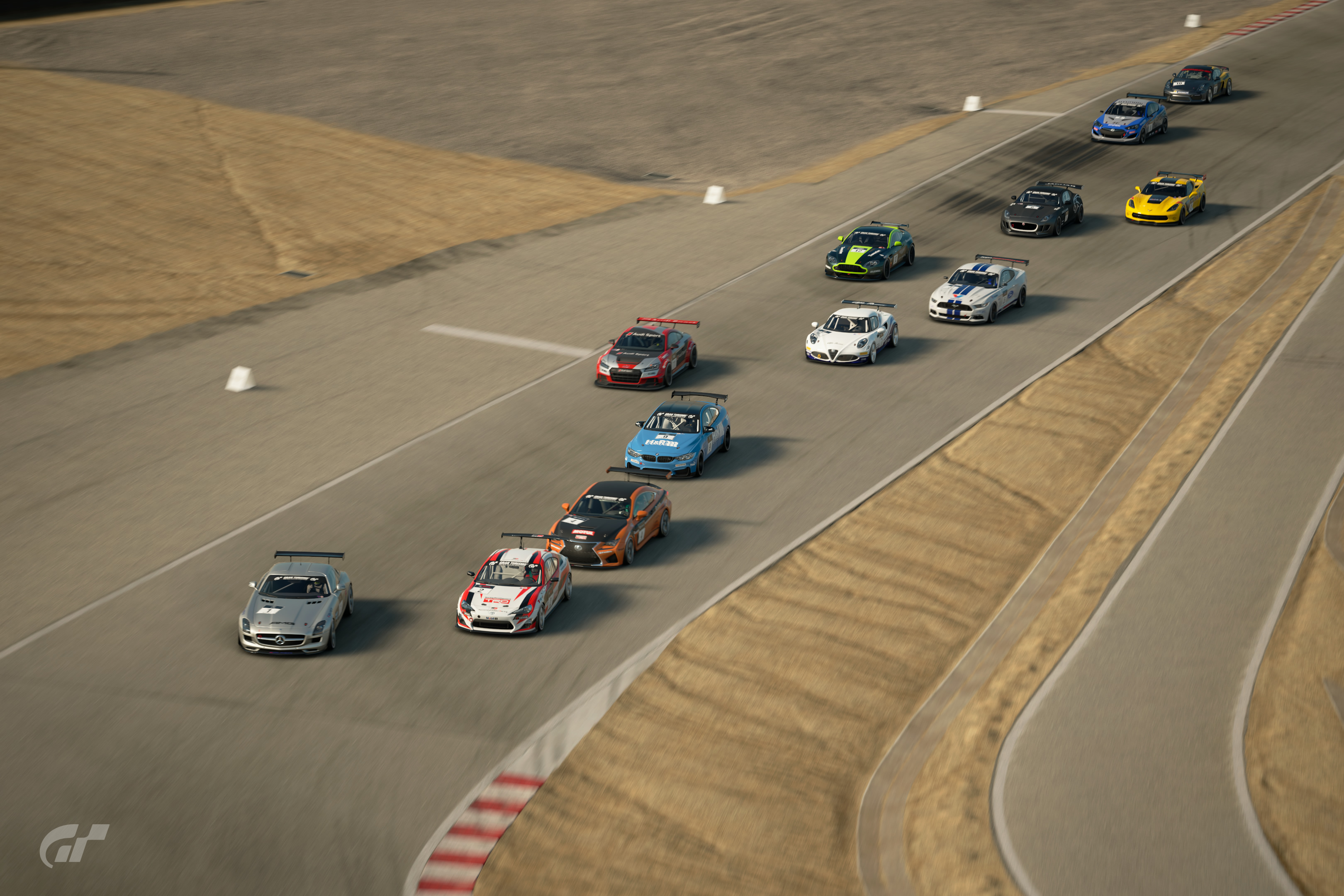 Com mais 12 pontos em jogo para quem terminasse em 1º lugar, a segunda corrida teve como palco o circuito de WeatherTech Raceway Laguna Seca, que foi introduzido no Gran Turismo Sport este fim de semana. Trata-se de um traçado de eleição para vários dos participantes, com cada equipa a ter de completar 20 voltas em carros de competição do Gr.4 e com as mesmas regras gerais da Corrida 1: cada um dos três pilotos teria de conduzir um mínimo de cinco voltas e seria necessário usar os três tipos de pneus.