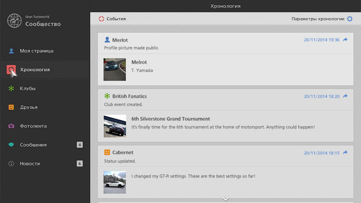 *Поддержка сетевых служб Gran Turismo 6 прекращена. Эта функция больше не доступна в игре.