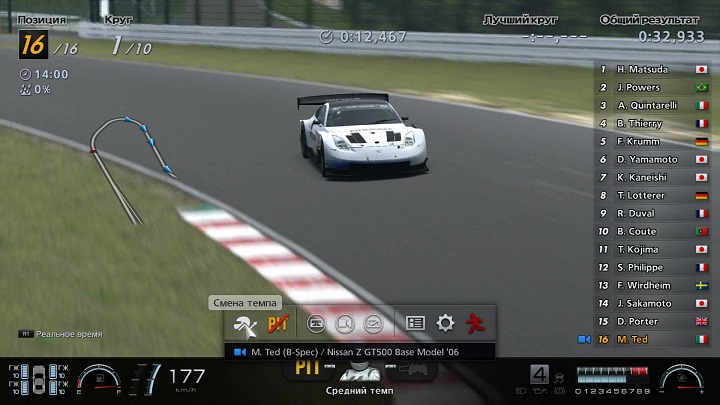 В ходе заездов B-spec в центре нижней части экрана отображается информация о статусе вашего компьютерного гонщика: