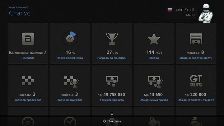 - Общая сумма кредитов, потраченных вами на тюнинг в автомастерской. Расходы на гоночное снаряжение не учитываются.