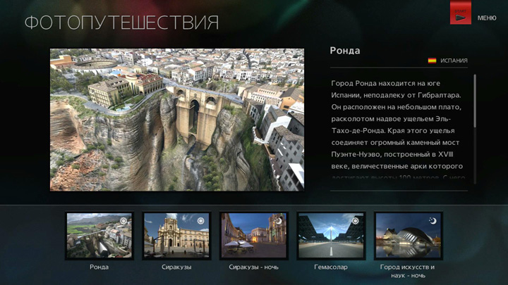 Выбрав пункт "Фотопутешествия", вы перейдете на экран выбора места. Выбрав место, вы увидите посвященный ему видеоролик. Если он вам понравится и вы захотите устроить фотосессию именно в этом месте, нажмите кнопку X.