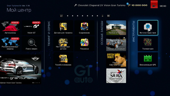 В режиме "Фотопутешествия" вы можете снимать свои любимые машины в самых живописных уголках мира. У вас есть возможность запечатлеть рядом с машиной своего гонщика, а также поместить в кадр два автомобиля сразу. Сделанные снимки сохраняются в разделе "Коллекция" меню "Галерея". Оттуда их можно экспортировать в систему PlayStation®3 для копирования на устройства USB и другие носители информации.