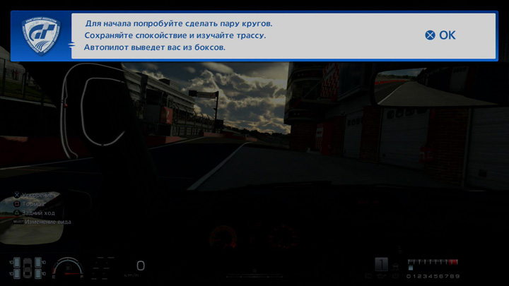 Впервые начав игру, вы получите сообщение от Ассоциации Gran Turismo с просьбой представиться. После того как вы введете имя, вам будет предложено изучить основы управления автомобилем и правила игры. Следуйте указаниям Ассоциации – и вы быстро во всем разберетесь.