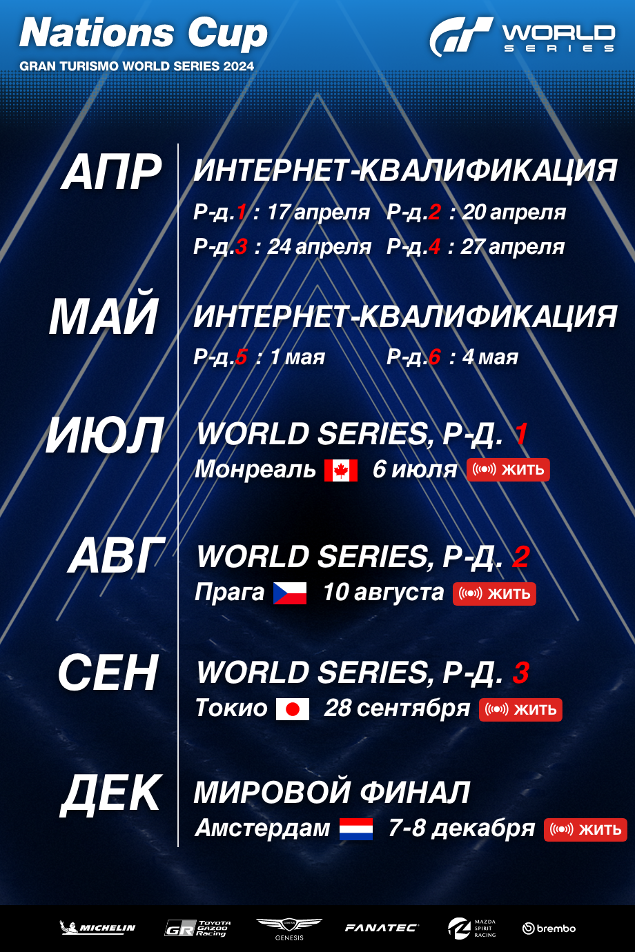 Трансляции мероприятий сезона 2024 г. будут проводиться по следующему расписанию: