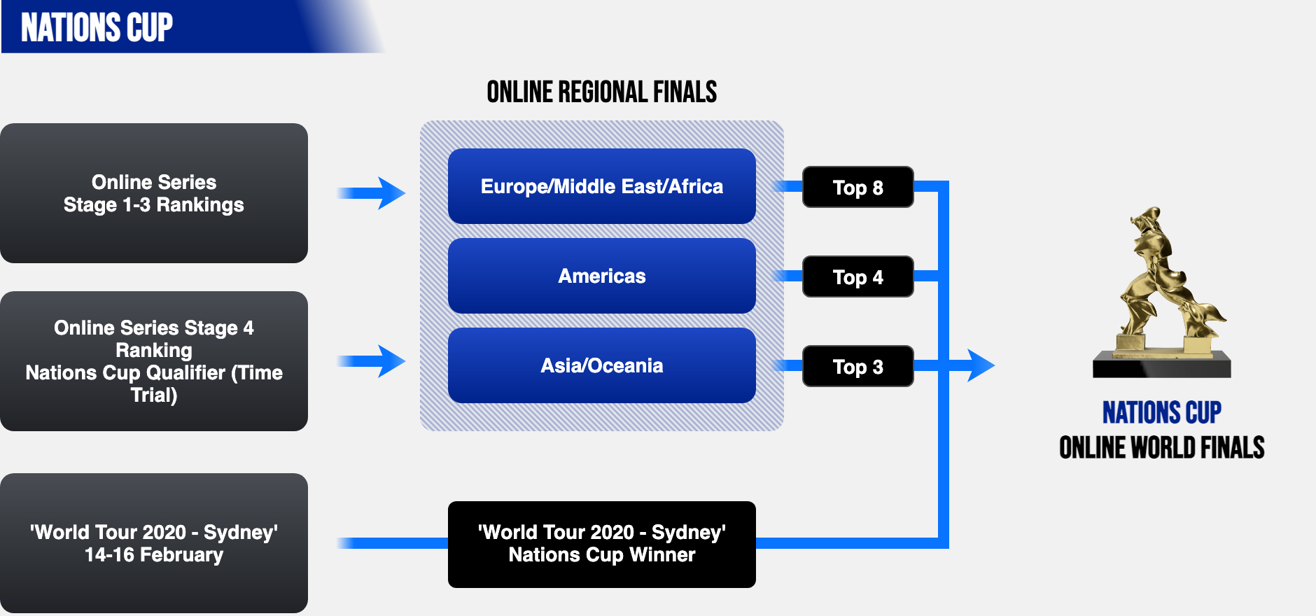 - سيتم عقد سلسلة Nations Cup عبر الإنترنت كمسابقة لمدة 4 أشهر من أبريل حتى أغسطس .