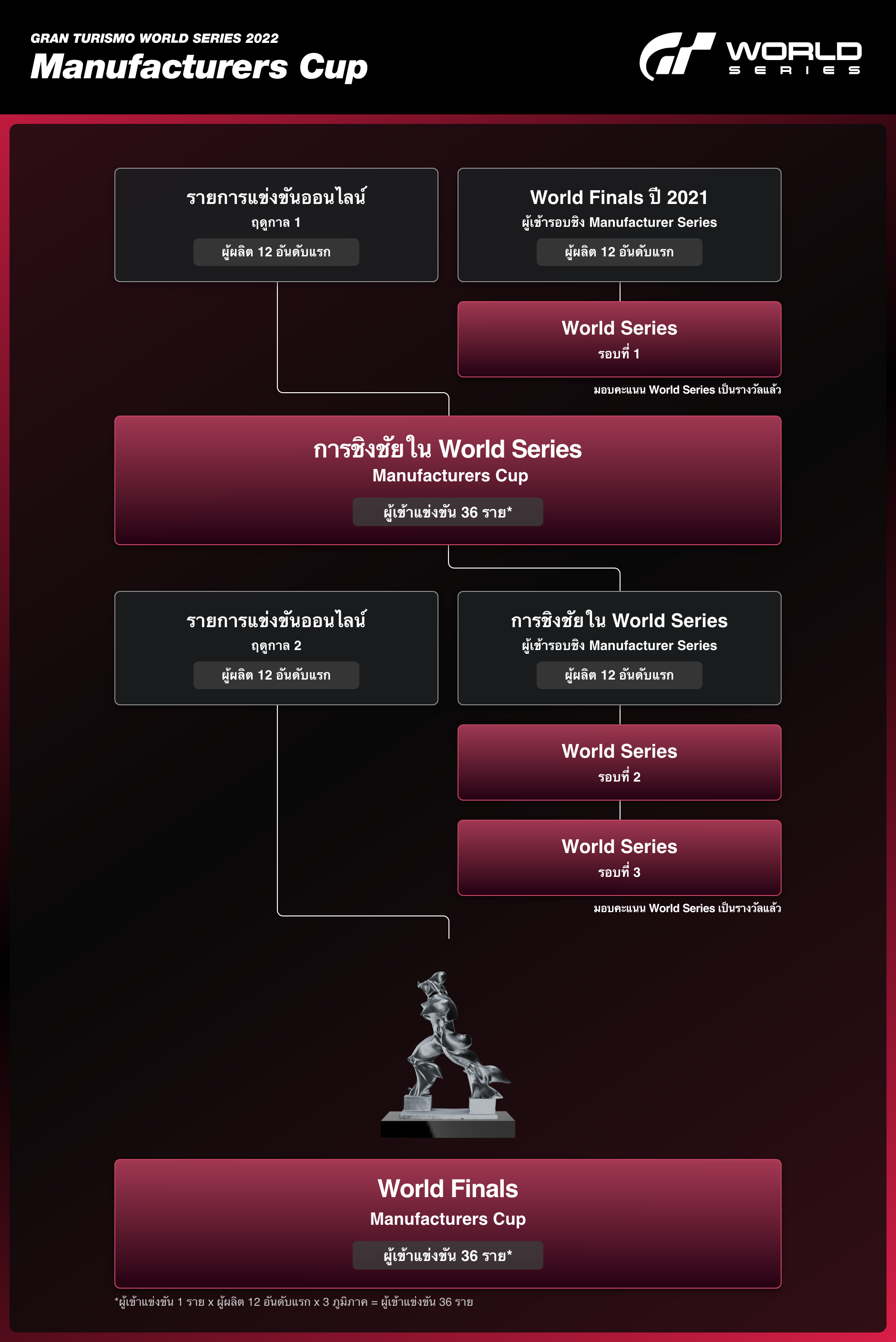 | นักแข่งที่เป็นตัวแทน | เลือกจากนักแข่งของแต่ละบริษัทที่เข้าร่วมการชิงชัยใน World Series ปี 2022 |