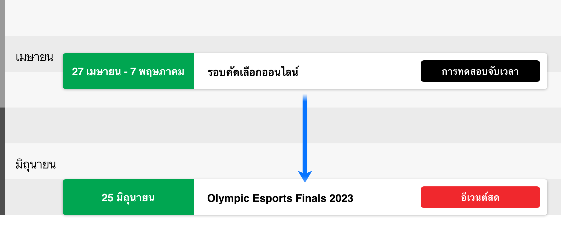 อีเวนต์มอเตอร์สปอร์ต Olympic Esports Series 2023 จะประกอบด้วยช่วงต่างๆ สองช่วง ดังนี้