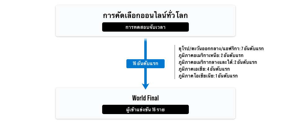 - (จะแจ้งวันแข่งขันจริงให้ผู้เข้าแข่งขัน World Final ทราบโดยตรง)