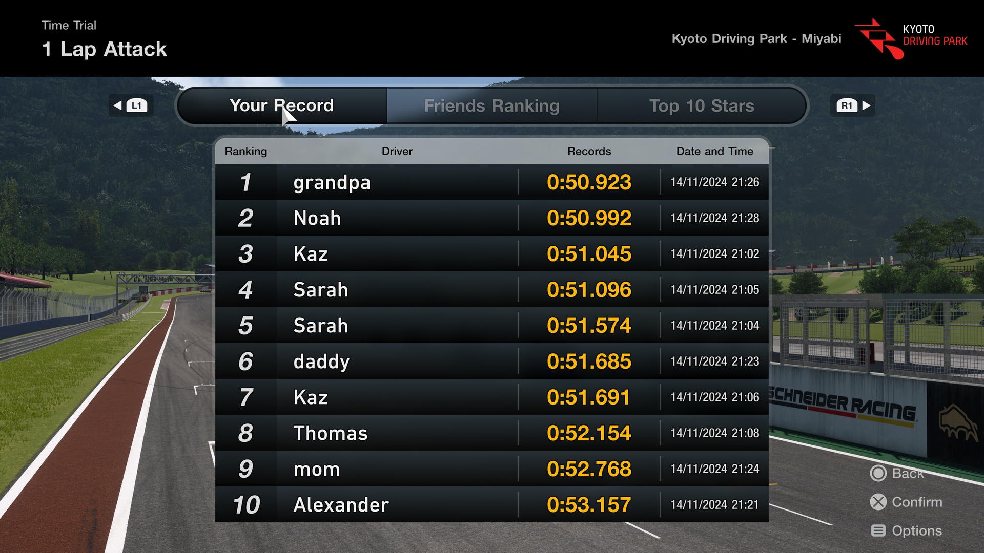 ทั้งนี้ รถทุกคันจะปรับจูนมาเพื่อใช้ใน "My First Gran Turismo" โดยเฉพาะ เพื่อให้ผู้เล่นหน้าใหม่ได้มีประสบการณ์ในการขับขี่ที่สนุกสนานได้อย่างง่ายดาย