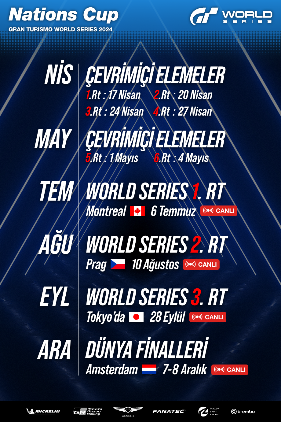 - (Asıl yayın tarihleri değişebilir. Sürücüler gerçek yarış tarihleri hakkında doğrudan bilgilendirilecektir.)