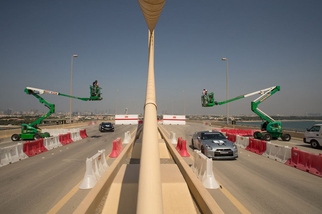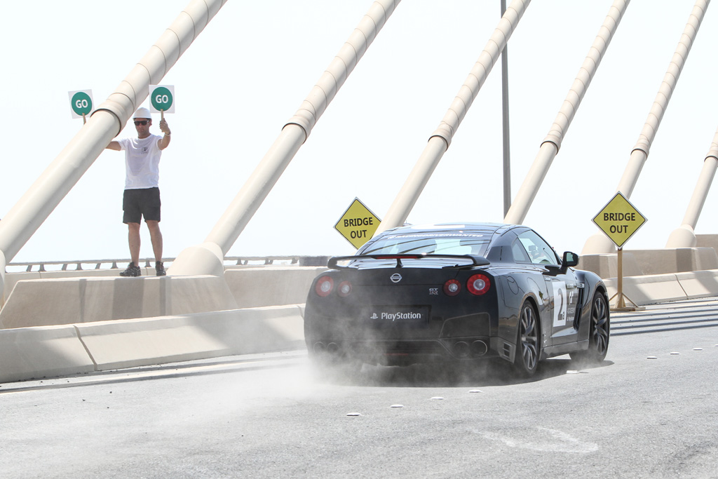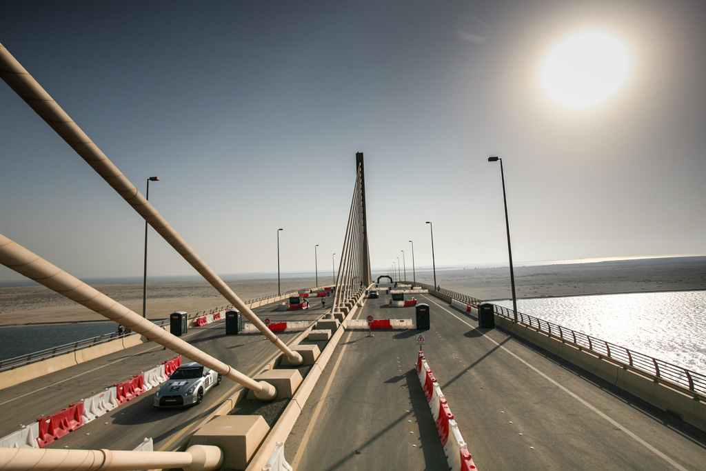 “Hiçbir yere çıkmayan köprü” Abu Dhabi’de bir mihenk taşı haline geldi. Etkileyici altı şeritli ve 1.3 km uzunluğundaki Hodariyat Köprüsü, anakarayı Hodariyat Adası’na bağlıyor. Bu adadaysa hiç yol bulunmuyor. Köprü, GT Academy Avrupa Yarış Kampı’nda bugünün eleme mücadelesi Sokak Yarışı’na sahne oldu. Engelli parkurdaki başa baş mücadelede mükemmel Nissan GT-R otomobilleri kullanıldı.