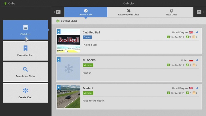 - A list of race events in which only club members can take part. Only the club owner can create club events. Each club can set up a maximum of 10 club events.