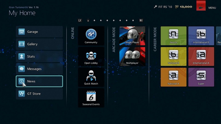 In order to view the latest news, please sign into PlayStation®Network before launching Gran Turismo 6. For more details on the news feature, please refer to the "News" page in the "Community" section of this manual.