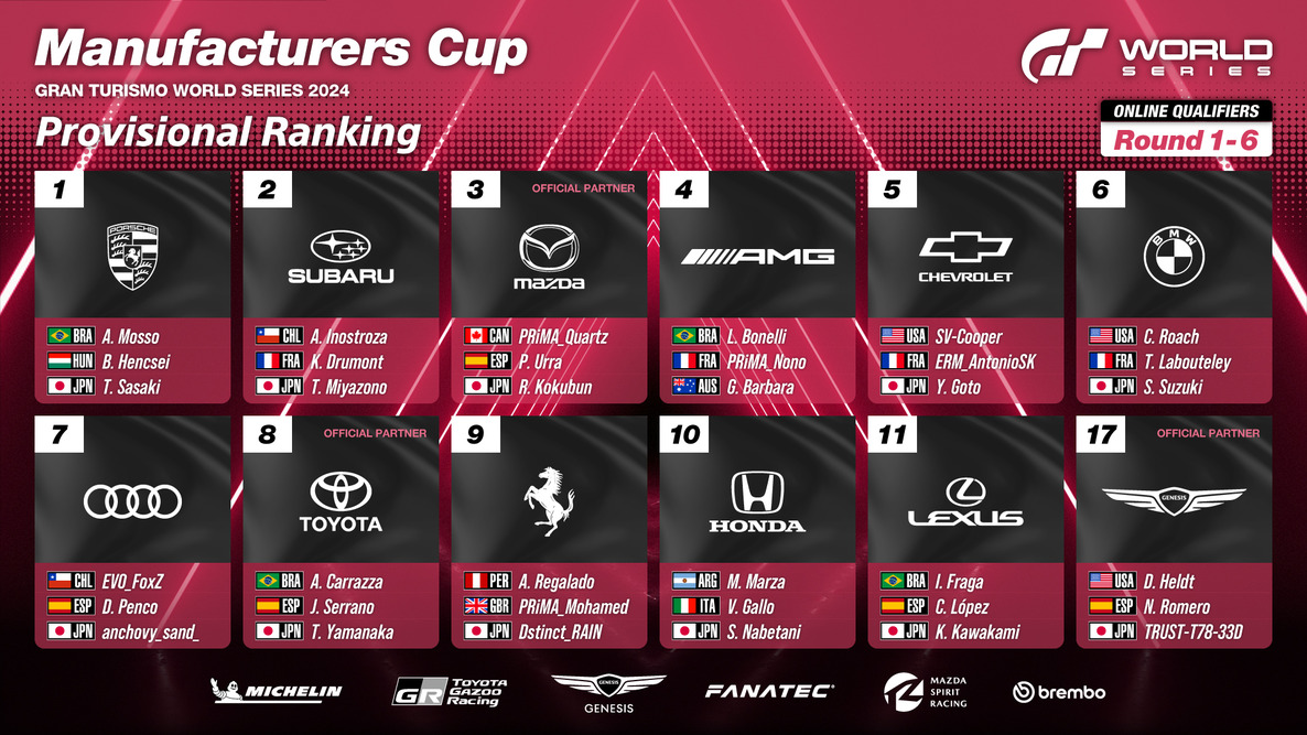 The final round of the "Gran Turismo World Series" 2024 Online Qualifiers - Manufacturers Cup took place on May 25, and the twelve manufacturers advancing to the World Series Rounds 1 through 3 have now been determined.