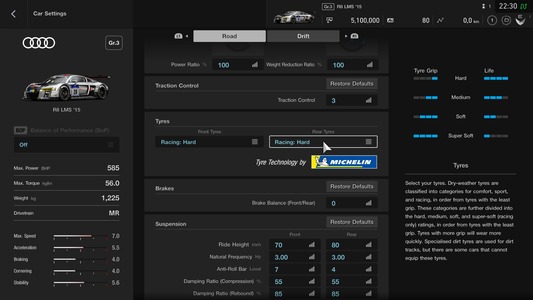 Michelin will be featured on the Car Setting screen as our tire technology partner.