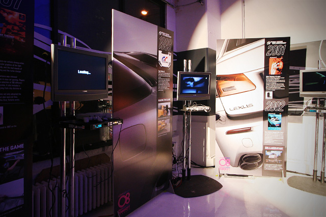 The one-night only club built for this event was decorated with massive panels tracing 10 years of “Gran Turismo” history, with a demonstration corner where guests could play all of the past Gran Turismo titles. Also on the display on the floor were two Lotus Exige cars that were prepared especially for this event. One of these cars was hand-painted by Eric Haze, a leading street graphics artist of New York. This Exige was unveiled here for the first time, then placed in a charity auction. The proceeds will go to New York’s “Studio in a School,” which is an organization who actively works to provide children with high quality artistic experiences.