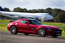 On Monday, 05 September, 2011, Formula 1™ ace David Coulthard was thrilled to take victory in an innovative Mercedes-Benz virtual v. reality race staged simultaneously at two locations in Surrey, England. Driving a real-life 6.3 litre V8 Mercedes-Benz SLS AMG, ‘DC’ completed a 15 minute shoot-out around the Dunsfold track, home to BBC Top Gear. Up against him were six drivers in the virtual Gran Turismo®5 version of the SLS AMG racing on the same track but from the comfort of Mercedes-Benz World at Brooklands in Surrey.