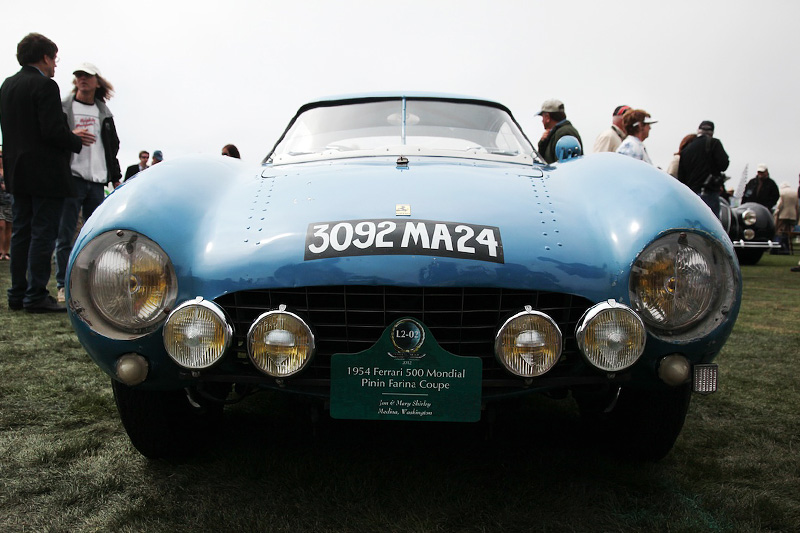 There are a few different versions of the Ferrari 500 Mondial, but the car that received the GT Trophy award is a Pininfarina Berlinetta (coupe), built specially for the 1954 Tour de France race and the only one of two that was ever made.